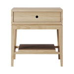 - Includes a spacious drawer and an open shelf for convenient bedside storage and display.