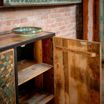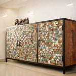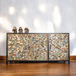 | Description | Unique sideboard made of mango wood Turn your house into an art room The fronts were decorated in a mosaic design It has 3 compartments to store all your essentials. This exquisite sideboard features a stunning mosaic tile design that adds a touch of artistry and character to any space. With a solid black metal frame, this piece not only offers durability but also enhances its modern aesthetic, making it a perfect addition to contemporary interiors. |