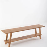| Description | Designed for those who appreciate natural beauty, this wooden bench brings warmth and function to your space. The sleek, elongated top rests on sturdy, angled legs, while the lower shelf offers extra storage for decor or essentials. Crafted from rich oak wood with a smooth grain finish, it exudes organic charm and durability. Whether styled in an entryway, dining area, or living room, its minimalist silhouette blends seamlessly with modern, rustic, or Scandinavian interiors. Let the earthy tones and clean lines elevate your space with timeless sophistication. |